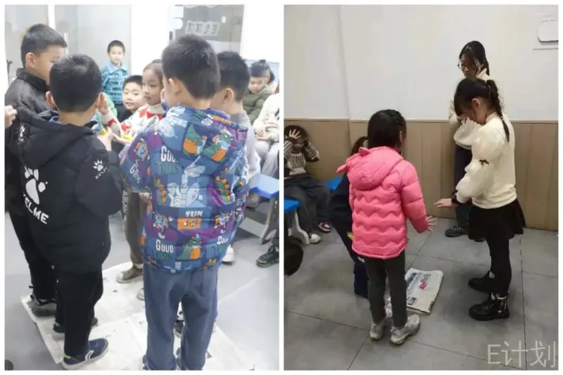 由小朋友们扮演北极熊,旧报纸代表北极熊生存的家园——冰川,糖果代表食物,报纸以外的地方代表海洋,一群“北极熊”在海洋中游了许久,亟需爬上冰川捕获到食物才能继续存活下去。