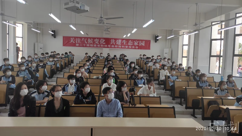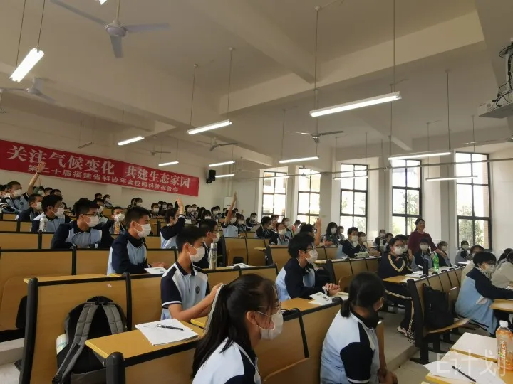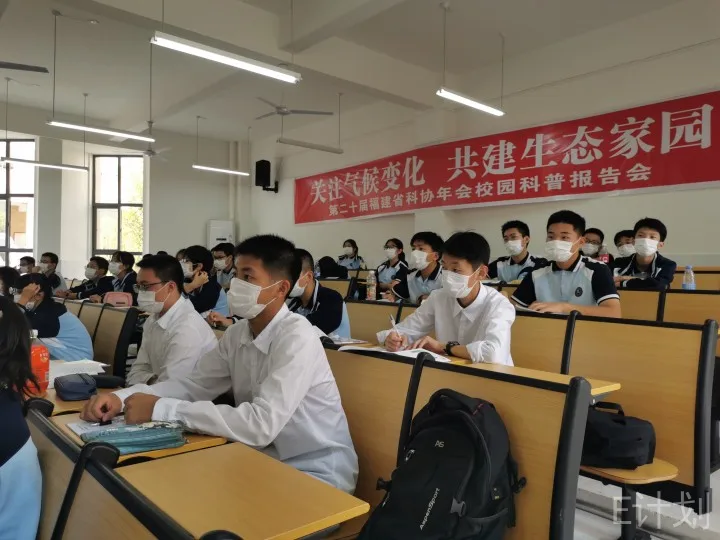 报告会由省气象学会常务副秘书长吴婷婕主持,省环境科学学会副理事长曾宪华做总结致辞,闽江科学传播学者,福建省气象局首席气象服务专家邹燕博士作《关注气候变化,共建生态家园》专题报告。南平一中高一年级实验班90余名学生代表在现场听取报告。