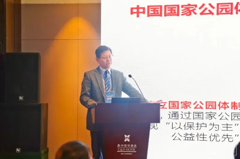 潘辉教授在发言中指出“2021年10月12日,习近平主席在《生物多样性公约》第十五次缔约方大会领导人峰会上宣布,中国正式设立三江源、大熊猫、东北虎豹、海南热带雨林、武夷山等第一批国家公园。国家公园对于保护提出了很高的要求,应在保护的前提下,在自然保护地控制区内划定适当区域开展生态教育、自然体验、生态旅游等活动,构建高品质、多样化的生态产品体系。