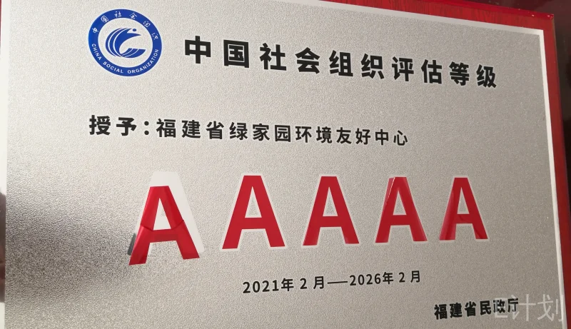 9月1日下午,福建省民政厅在福州举行全省性社会组织评估等级授牌仪式,为福建省绿家园环境友好中心等46家获评5A级的全省性社会组织颁发荣誉牌匾。福建省民政厅党组书记、厅长池秋娜出席会议并讲话,福建省民政厅党组成员、副厅长林弘主持会议。福建省绿家园环境友好中心理事长林英代表福建绿家园获领5A级社会组织牌匾和证书。池秋娜厅长指出,近年来全省社会组织着力发挥自身优势,在服务国家。服务社会、服务群众、服务行